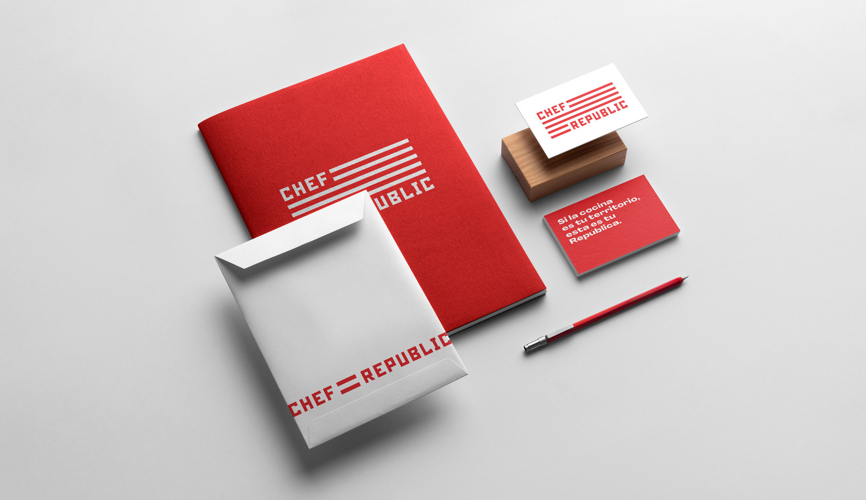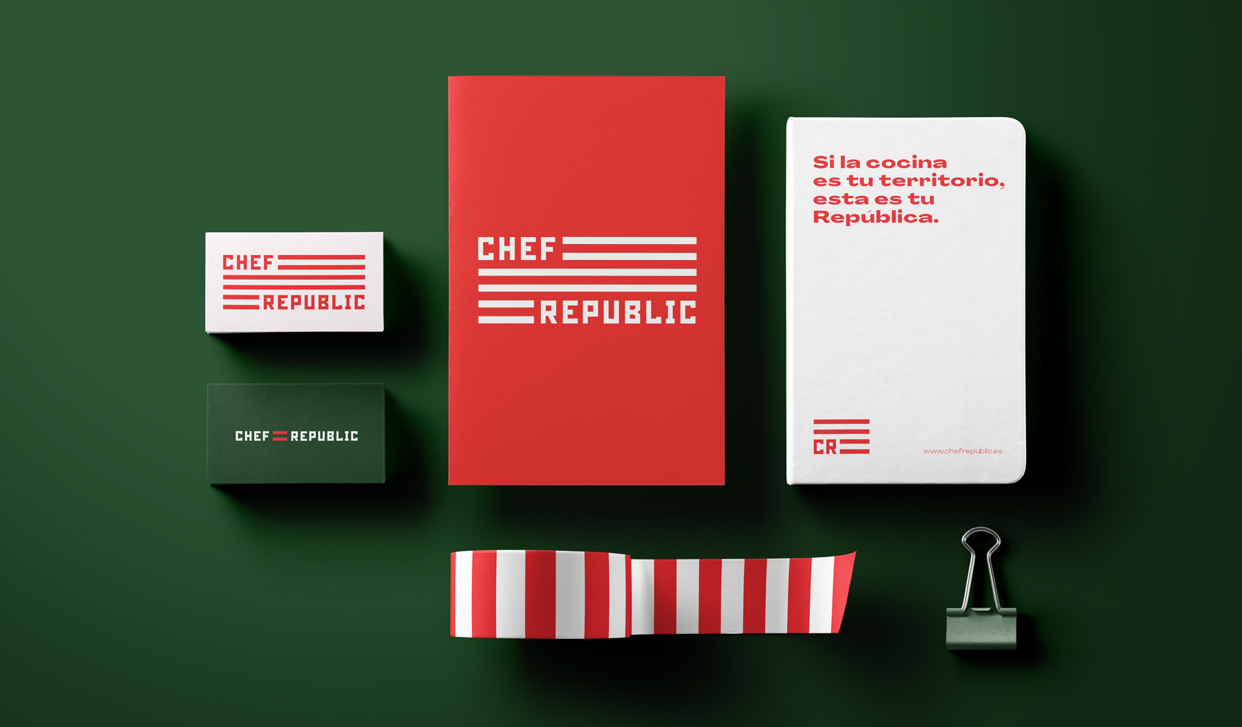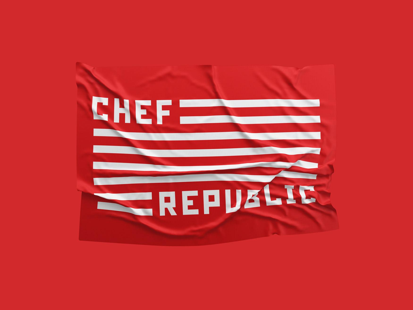 La marca nace con la intención de ser un símbolo de orgullo para los chefs. Tanto la tipografía como el sistema de aplicación de la marca se basa en el concepto y la estética de una bandera y en la identidad y pertenencia a esa comunidad, a esa nueva república gastronómica que busca los mejores diseños y materiales para su uniforme de batalla.